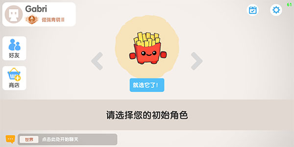 2、之后来到下方界面选择我们的初始人物,左右箭头可切换初始人物,点击就选它了可以锁定人物