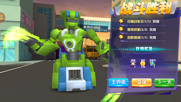 全面还原动漫中的跳跃战士战车,战斗形态与战车形态随心切换,趣味十足!让你在关卡挑战中更加自如!