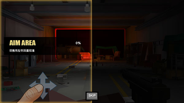 5、拖拽左侧画面可以进行瞄准,由于是教学关卡,所以我们拖动屏幕的时候,需要令上面的进度达到100%才可进行下一步。