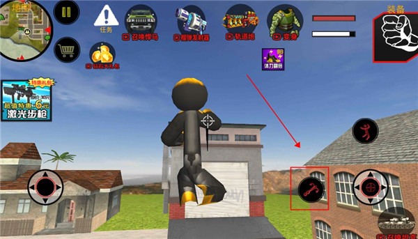 2、游戏最快乐的玩法小编觉得莫过于“飞索”了,在城市里自由的飞翔,要选中目标才能释放哦,并且需要注意使用距离。
