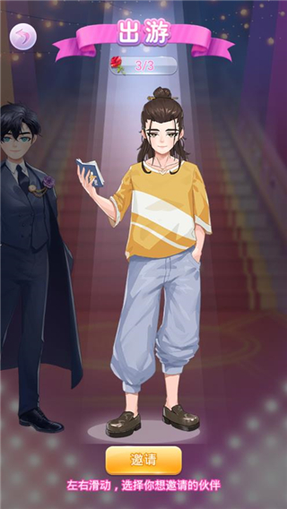 5、等待玩家搭配好服饰后可以选择左侧的出游按钮,玩家可以选择自己心目中的男神模样一起出去游玩