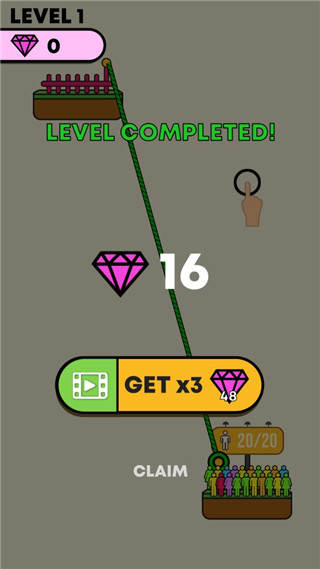 这个游戏看起来挺有意思的,就是个休闲闯关小游戏,画面是卡通风格的。玩法主要是用绳索在不同的节点连接,帮小人搭建一条安全通道,让他们到达终点。听起来有点像物理 puzzles,得动脑筋才能过关。刚开始可能简单,后面难度会增加,需要多想想怎么绕过那些圆形柱子什么的。