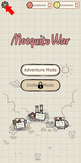1、下载并打开游戏后,默认语言为英语,我们点击左上角齿轮进入设置界面