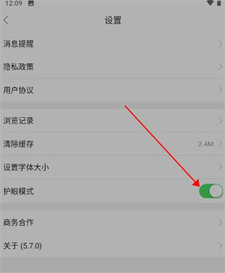 3、进入设置界面,点击【护眼模式】右侧按钮开启。