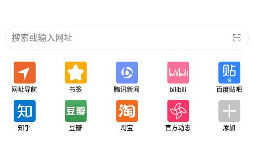 1、下载安装打开之后可以看到如图所示界面,为大家带来了非常多的内容,可以直接链入知乎、豆瓣、哔哩哔哩、贴吧等等也可以直接搜索或者是输入网址;