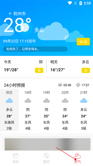 2、如果想查某一天精确的运势,就可以点击下方中间的黄历哦;