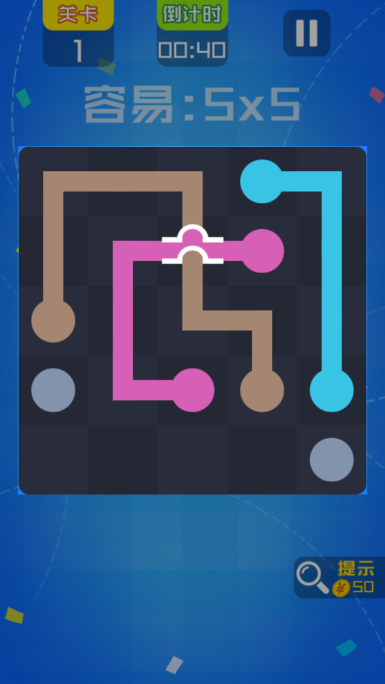 2、点击第一关开始游戏,游戏内的连线不能交叉,可以通过桥来隔开两条线;