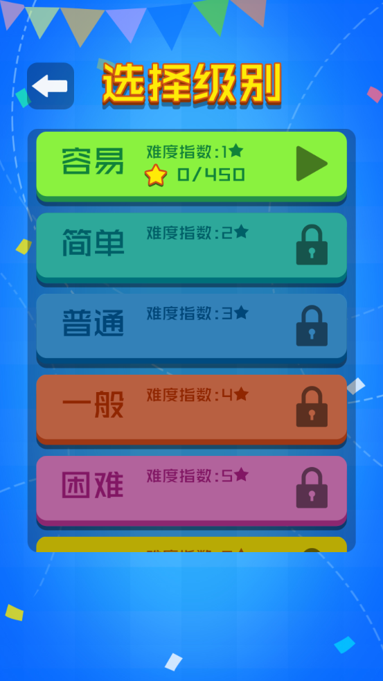 1、下载好乐游连线官方版之后打开游戏,选择游戏级别;