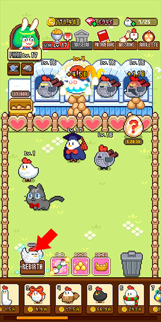 2、可爱又魔性的游戏画风,还有更多不同的小鸡在等你孵化和成长;