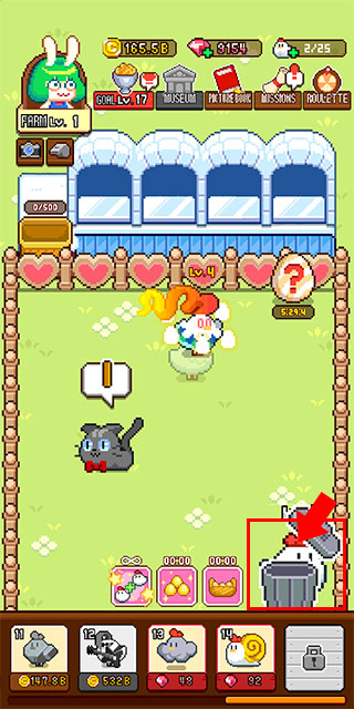 4、不需要的小鸡可以点击拖动小鸡至右下方的垃圾桶处将其处理掉