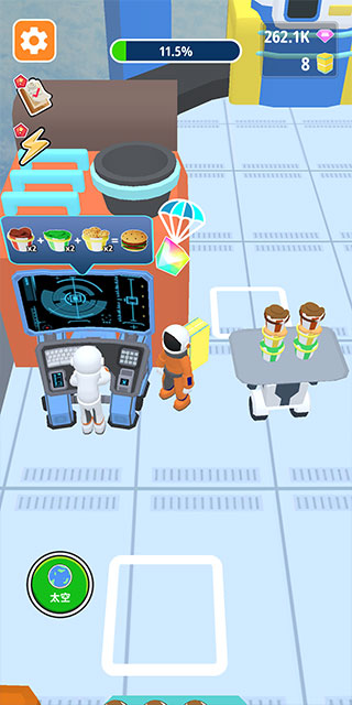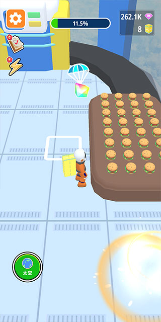 4、生成的汉堡可在右侧光圈旁领取,领取之后带给宇航员即可解决饥饿问题