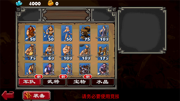 随时关注商店的东西,购买自己需要的武将和资源,此处水晶商店的东西建议买光,因为中后期会缺资源,可以前期先把货物屯上。武将商店主要购买自己要成长的武将,建议提前定好阵容就开始刷武将精魄。