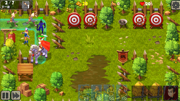 最常见的防守策略就是把地方单位引诱在一起,然后用AOE歼灭了。在路线上多处设置兵营和拒马角,将地方单位档住后用武将AOE技能歼灭或者炸裂弩闪电塔等范围攻击塔歼灭都可以。