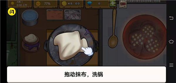 4、然后拖动抹布洗锅;