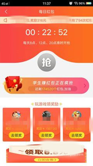 点击“每日红包,”在每天的八点,十二点,二十点就可以抢红包。