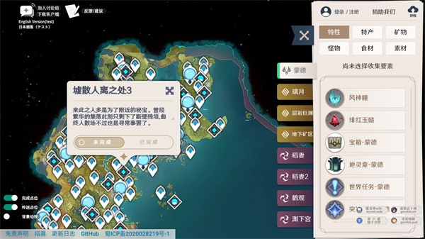 3、提供了包括风神瞳,岩神瞳,宝箱,野外boss,七天神像,NPC,传送点,地灵龛、矿物、秘境等资源点的详细分布位置。