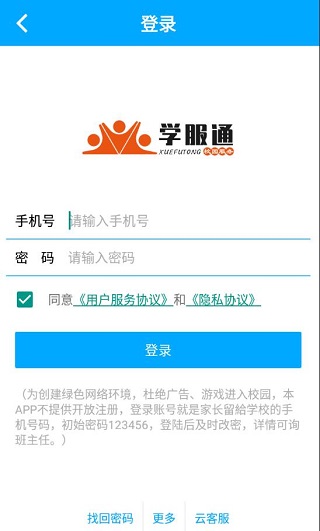 1、登陆账号为手机号,初始密码123456,请家长登陆后及时修改密码,以免他人登录
