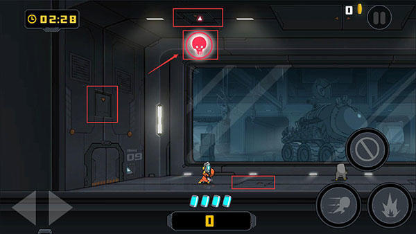 15、关卡场景内会有若干个标有黄色三角形的舱门,这些舱门是怪物们的出现口,当怪物将要从舱门出现的时候,会有红色警示标志,请保持一定的安全距离。