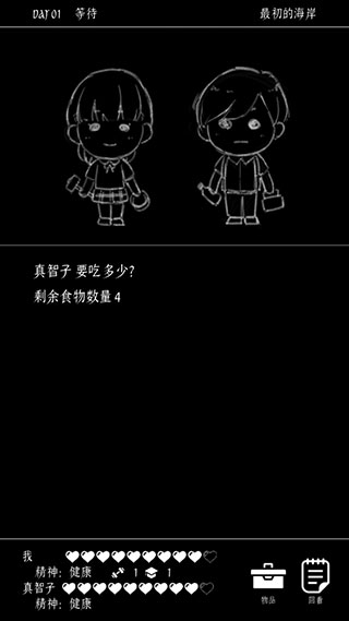 5、海边真智子捡到钥匙收下后再遇到行李箱会给大量食物(4-5)没钥匙有小刀只给一份