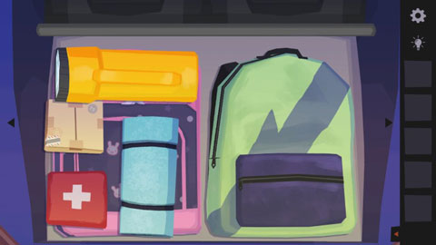 2、捡起右侧的门铃,将其安放到门墙上,然后来到车子后备箱取行李,取行李也需要一定的技巧,需要完成一个类似于华容道的游戏,将上方的物理移开取出两个背包。