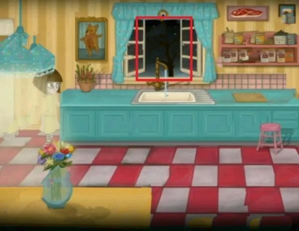 47、下去下楼和连体姐妹进行对话,右走进行一个小高能,接着点击窗户,来到窗户外面点击模板。