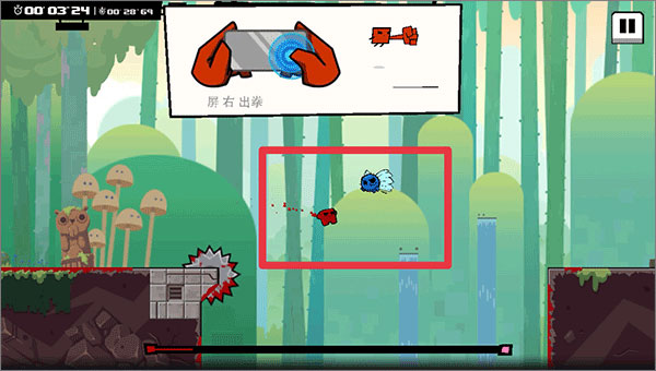 6、同时游戏中还会出现一些怪物,这些怪物会对我们发起攻击,玩家可以点击屏幕右侧进行出拳把敌人打败