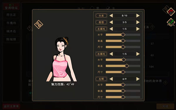 左上角人物点开可以自己diy人物,影响魅力值 魅力值上限50,根据不同魅力值在游戏中对人物描述也不用。