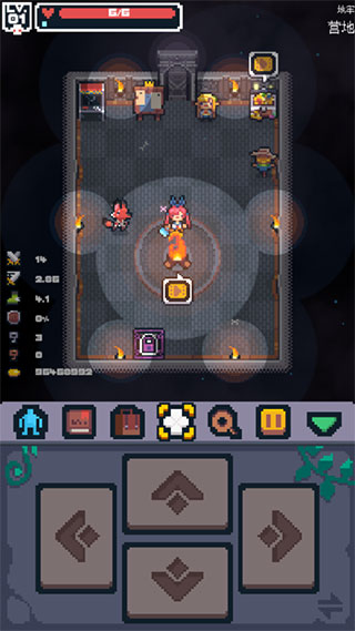 2、想要切换角色时,移动至篝火处,再次点击朝向篝火的方向键即可进入角色选择和强化界面