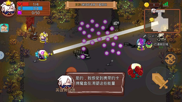 2、打BOSS学会放风筝和躲技能,新手打前面的图,不需要刻意凑卡牌,一路撸过去,很难输。