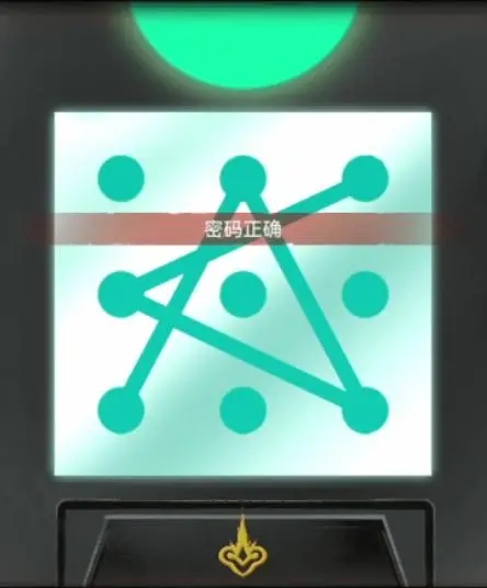 3、按照下图的顺序打开门的密码获得【游戏机】【蓝色条】。