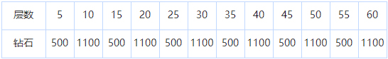 5、爬塔,塔一共有60层,每5层都有钻石奖励,一起有9600钻石