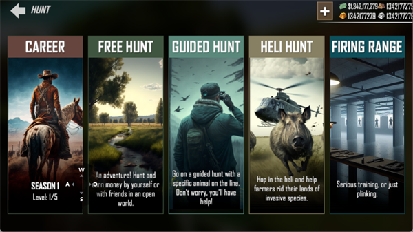 2、多样化的枪支选择和可升级性,使得玩家可以根据自己的喜好和需求来配置自己的武器库,并在游戏中逐步提升自己的狩猎实力。