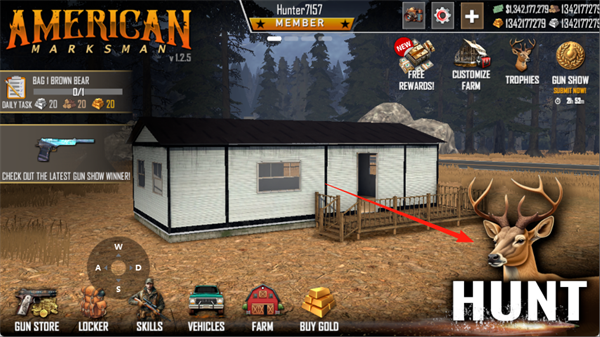 猎鹿人神枪手也被玩家叫做美国神枪手、美国射手,是一款以荒野冒险为背景的户外狩猎射击游戏,在这里玩家扮演喜好户外狩猎的用户,在美国各地购买土地并邀请好友一起来建立营地、探索荒野,享受悠闲的户外时光。虽然在玩法上看似以射击为主,但它更像是一款荒野求生游戏,但没有挖掘房屋躲避风雪等内容,而是荒野求生中另外一个非常重要的内容——狩猎,在荒芜的森林中猎狩各种野生动物、探索渺无人烟的野外,才是最终极的户外冒险体验。