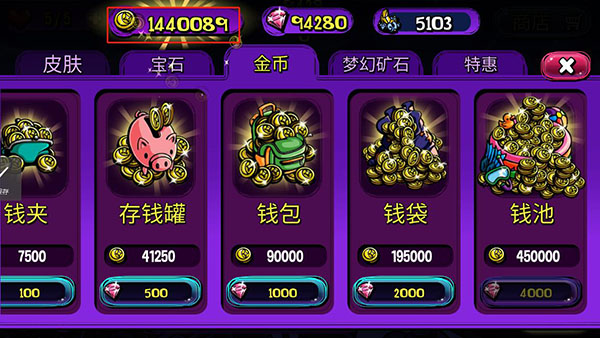 3、有了钻石大家就可以购买金币,点击金币,点击购买;