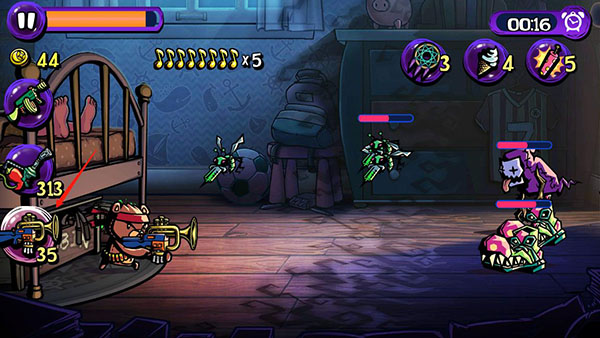 装备各种超级棒的武器!用BB枪、毒枪、胡椒喷雾、飞镖和其他许多许多武器攻击噩梦恶魔!用炸弹轰炸敌人,用霜冰器冰冻他们!在罗宾的床上设置各种了不起的玩具防御道具。建造铅笔路障阻止噩梦,或装备激光灯攻击远处的怪兽。
