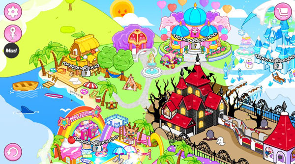 度假胜地(吸血鬼酒店大堂、豪华套房)、冰雪城堡、泳池派对、海滩和岛屿、美容沙龙