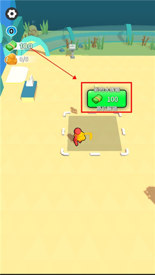 3、按照箭头的指引回收鱼,将自己在海底摸到的鱼出售,从而获得到一些收益,不断累计获得更多;