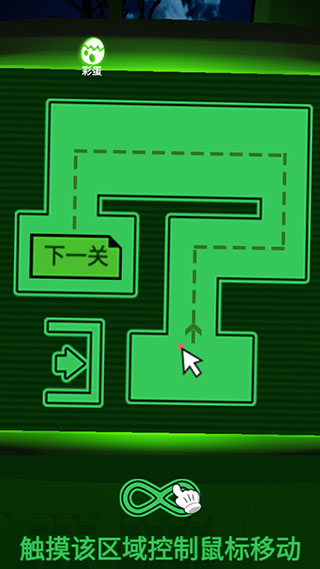 3、这期间需要注意鼠标上的小圆点不能碰到墙壁,否则会导致游戏失败