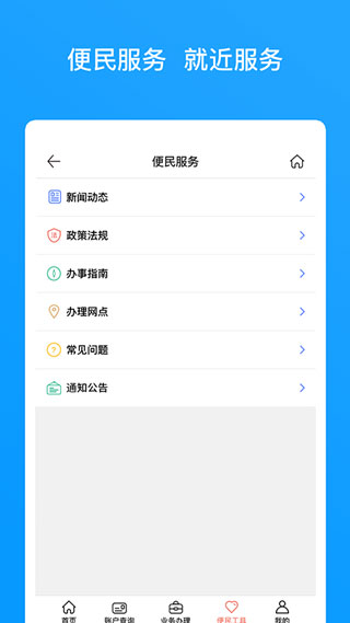 1、一键查询网点,如果需要办事的话可以在此查看附近的全部网点;2、掌握账户清单,打开清单的时候可以查看账户的基本信息与公积金的数额;
