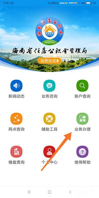 3、接下来就讲怎么提取公积金?首先打开业务办理进行操作提取