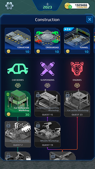 1、玩家可以自由安排传送带和车间。与同类游戏不同,对工厂的设计和建造没有任何限制。2、大量成套汽车。如果你愿意,你可以制造一辆前轮驱动的SUV或四升发动机的跑车,只是这样的车卖起来并不容易。