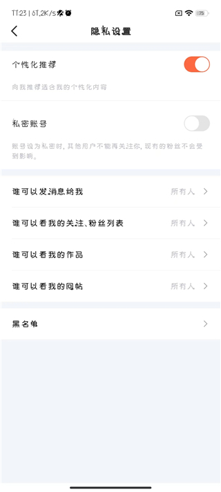 点击隐私设置。