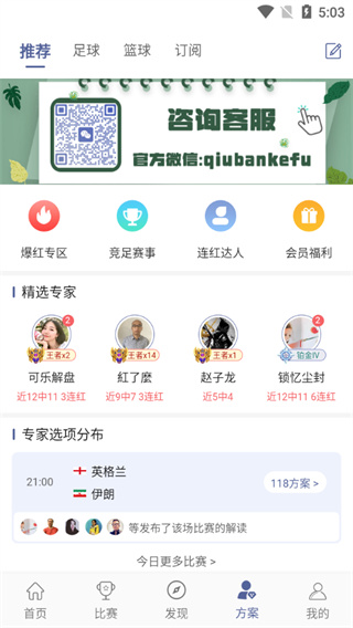 4、在方案页面可以查看各位小伙伴以及资深专家对任意场比赛的解读。