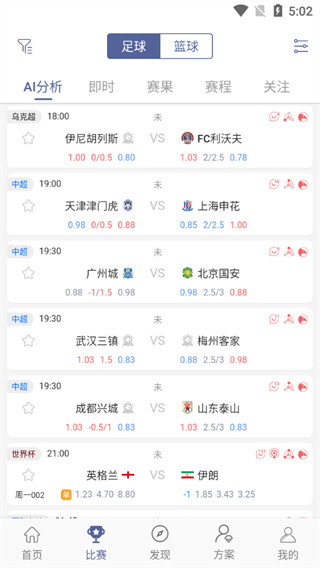 2、在比赛栏可以查看足球与篮球的各种赛事分析,同时还可以查看近期的各种赛程安排。