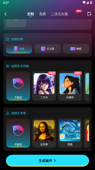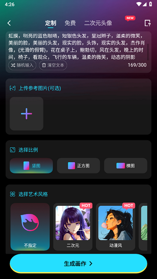 Matrix Dream最新版是一个强大的AI图片生成工具,适合各种创作需求。它不仅提供了丰富的艺术风格和震撼的画面效果,还让用户可以根据自己的想法定制独特的作品。软件界面友好,操作简单,即使没有绘画基础也能轻松上手。最让我觉得有趣的是它的二次元头像功能,上传一张照片就能变成二次元形象,简直像是拥有了哆啦A梦的“变形术”!此外,Matrix Dream还支持多种艺术风格和比例调整,满足不同创作需求。无论是想生成风景、人物还是抽象画作,它都能帮你实现。虽然目前免费版有一些限制,但整体体验还是很不错的,尤其是对于喜欢尝试新鲜科技的人来说,绝对值得一试。