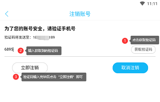 5、输入获取到的验证码后点击下方的“立即注销”即可