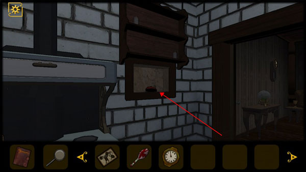 2、打开抽屉获得红色机关石头和查看报纸,注意钟表上红色指针指向的数字VIII