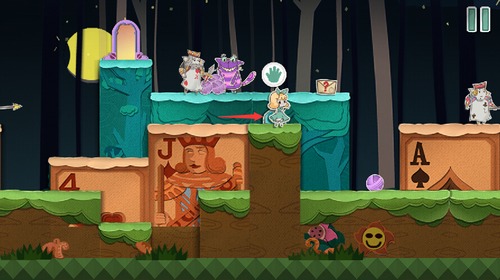 2、扑克兵会被球砸晕,趁着球的间隙快速移动到右上角的门里。