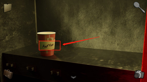 9、点击门右侧通过电的机器,将纸杯上的名字点击出来