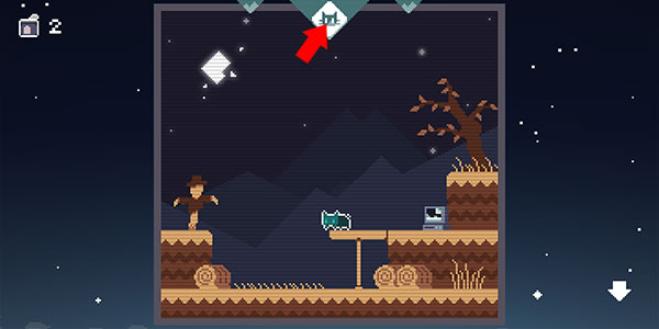 让猫站在下面的平台右侧,贴着边,然后和方块互换位置(这样方块就会被放置在图示位置),然后从上面的平台上下来落到方块上。这样就可以把方块移到左边当垫脚石拿罐头